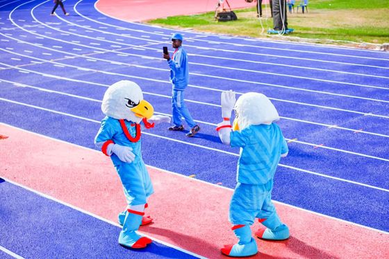 প্রতিযোগিতার দৌড়ের ট্র্যাকটি উচ্চমানের রাবার উপাদান দিয়ে তৈরি যা চমৎকার স্থায়িত্ব এবং স্থিতিস্থাপকতা প্রদান করে।এটি বিশেষভাবে তীব্র ব্যবহার এবং কঠোর আবহাওয়া অবস্থার প্রতিরোধের জন্য ডিজাইন করা হয়, যা এটিকে পেশাদার প্রতিযোগিতা এবং প্রশিক্ষণ সেশনের জন্য উপযুক্ত করে তোলে।