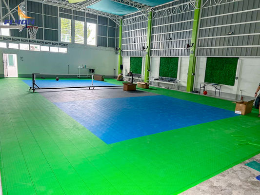 এই পিপি টাইলস ফ্লোর সারফেস উচ্চ-প্রভাবিত পলিপ্রোপিলিন কোপোলিমার থেকে তৈরি করা হয়েছে, যা ভারী ব্যবহার এবং বিভিন্ন আবহাওয়ার পরিস্থিতিতে প্রতিরোধী করে তোলে, যা উচ্চ ফুট ট্র্যাফিক এবং সরঞ্জাম ব্যবহারের অভিজ্ঞতা লাভ করে এমন ক্রীড়া আদালতের জন্য আদর্শ। উপাদানটি চমৎকার ট্র্যাকশন এবং শক শোষণও সরবরাহ করে, যা ক্রীড়াবিদদের মধ্যে আঘাত এবং ক্লান্তি হ্রাস করে। লাল, নীল এবং সবুজ রঙের প্রাপ্যতা দলীয় রং বা ব্যক্তিগত পছন্দগুলির সাথে মেলে কাস্টমাইজেশনের অনুমতি দেয়, যা যেকোনো ক্রীড়া সুবিধায় একটি প্রাণবন্ত এবং পেশাদার চেহারা যোগ করে।